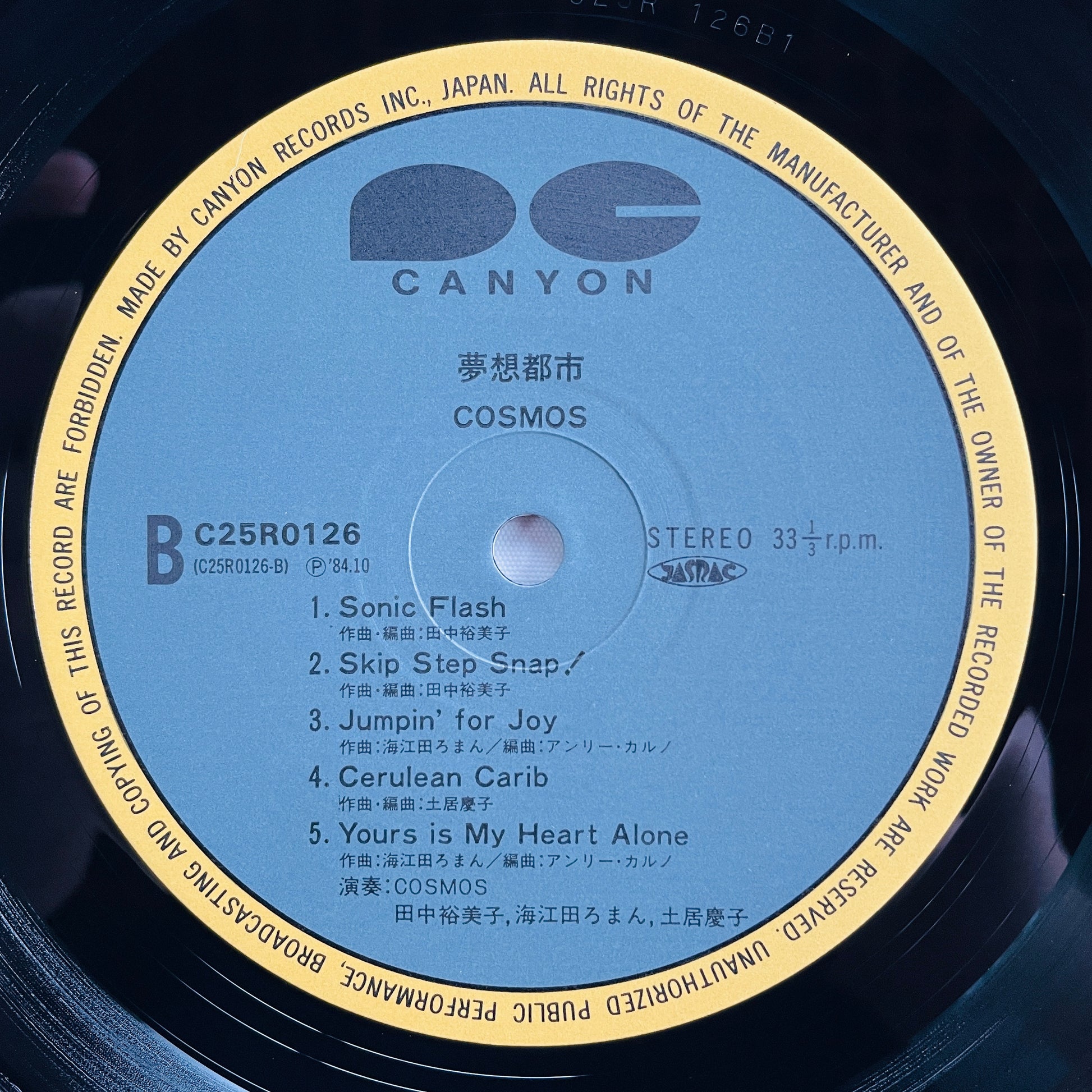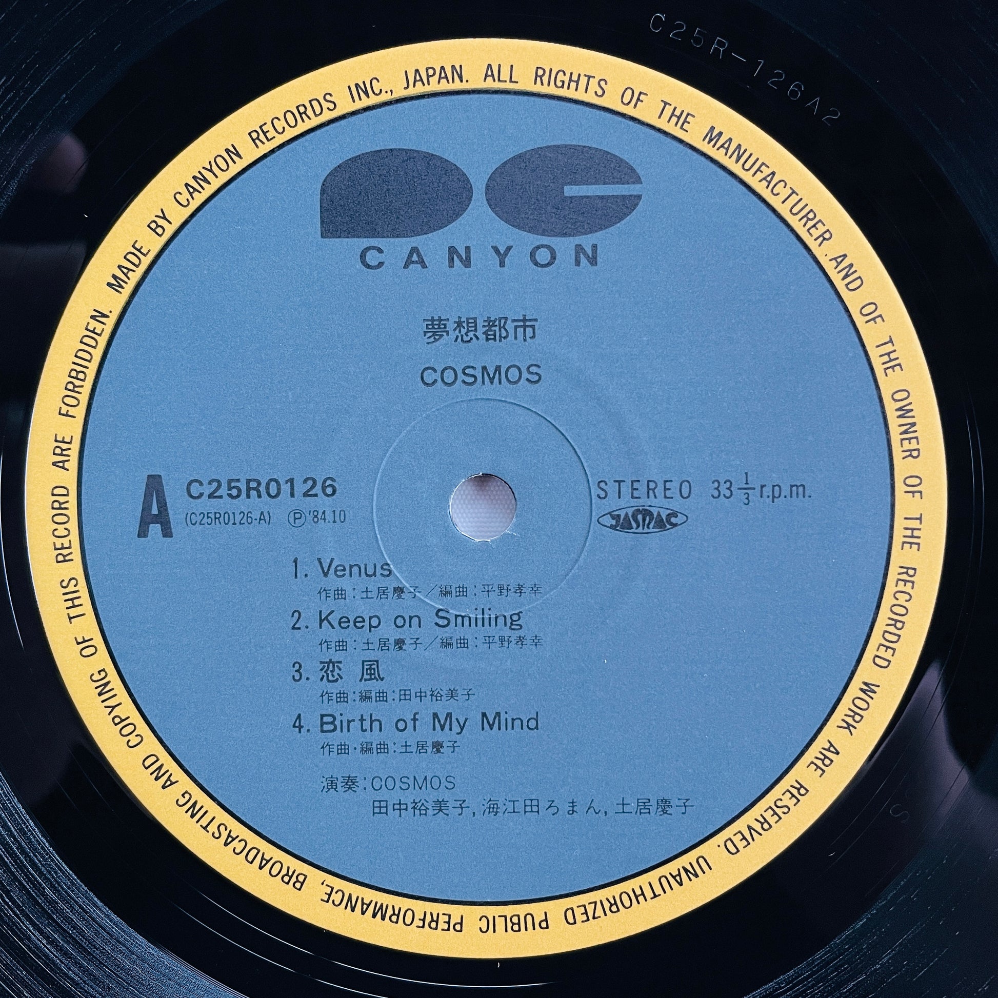 | Description | '84 Japanese Original Pressing / Clean Copy! / Includes Mellow Fusion Heat A3"Koikaze", A4"Birth Of My Mind" / Cosmos are Keiko Doi, Roman Kaieda, Yumiko Tanaka / With Fujimaru Yoshino, Masaki Matsubara, Yuichi Togashiki, Makoto Matsushita, Akira Okazawa, Nobu Saito, Motoya Hamaguchi |