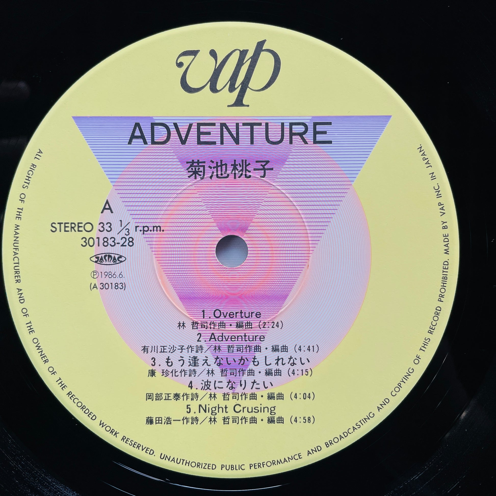 | Description | '86 Japanese Original Pressing / Clean Copy! / Includes City Pop Killer B4"Mystical Composer", A2"Adventure", A5"Night Cruising" / Produced by Tetsuji Hayashi / City Pop Classic!! |