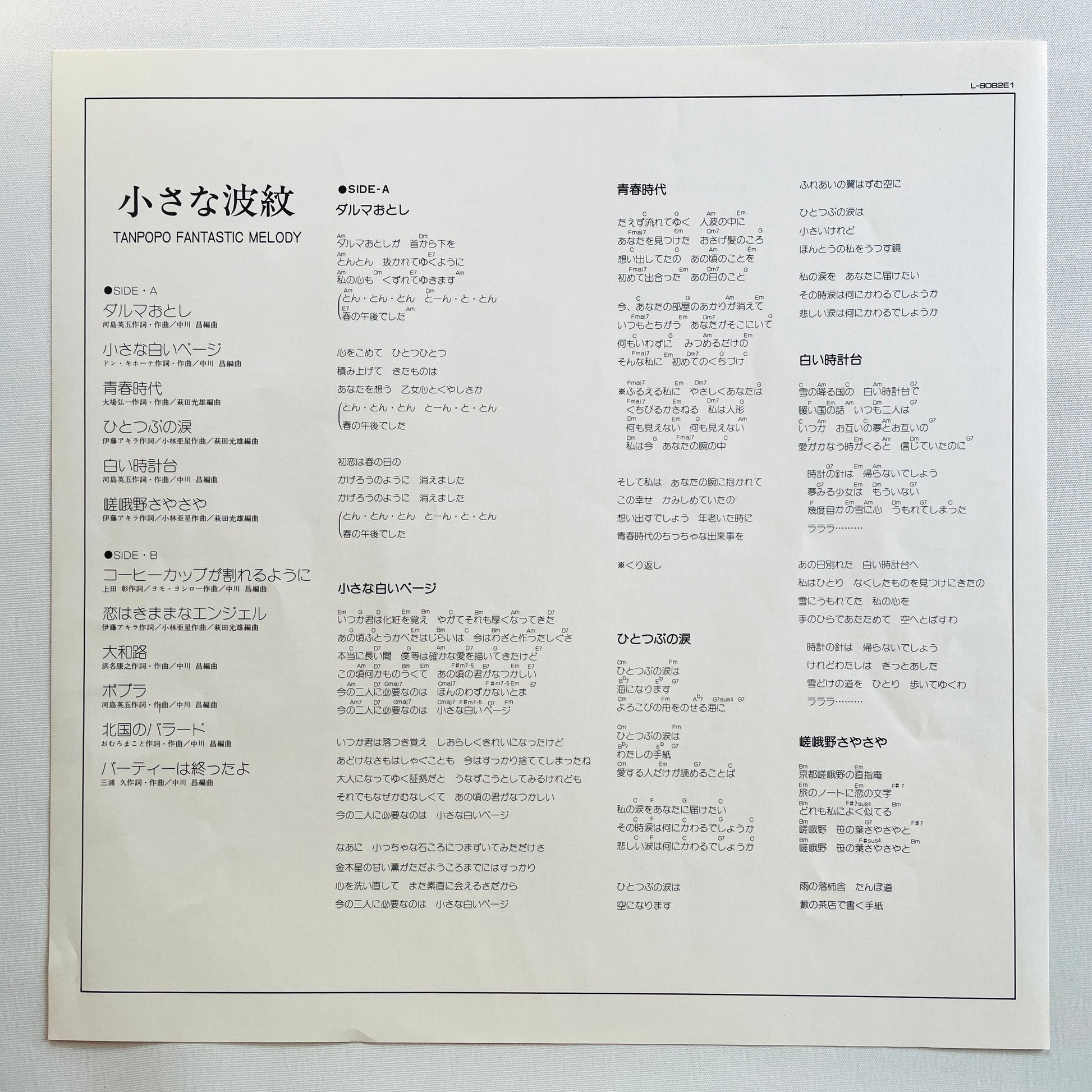 | Description | '76 Japanese Original Pressing / Includes Groovy Folk A5"Shiroi Tokeidai", Dope Japanese Folk A6"Sagano Sayasaya", A4"Hitotsubu no Namida" |