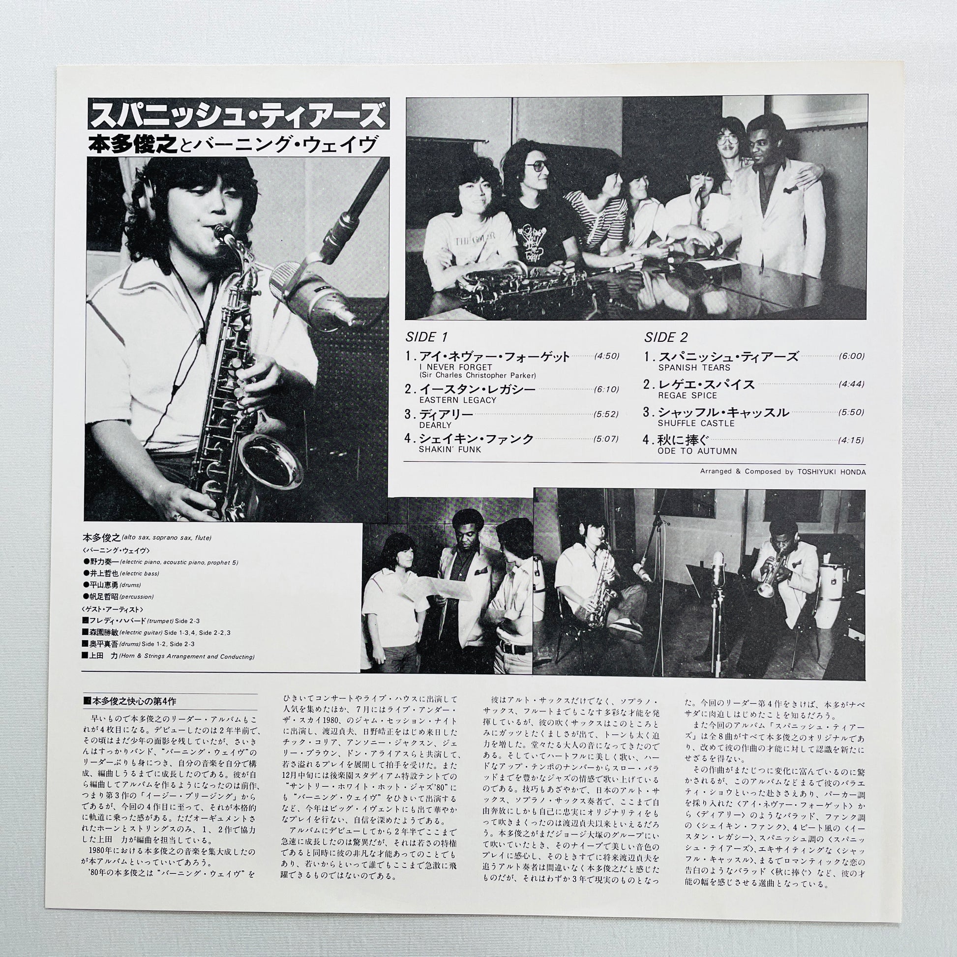 | Description | '81 Japanese Original Pressing / Clean Copy! / Includes Dope Groovy Fusion B1"Spanish Tears" / Toshiyuki Honda's 4th leader album / With Freddie Hubbard, Soichi Noriki, Katsutoshi Morizono, Chikara Ueda, Singo Okudaira |